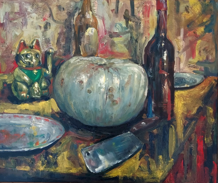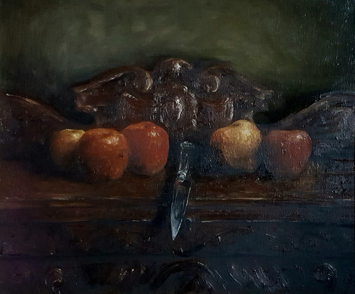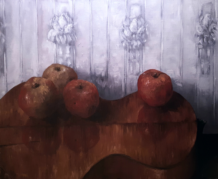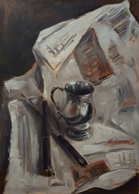 Huiles, natures mortes, et études lors de mes cours de modèle vivant.