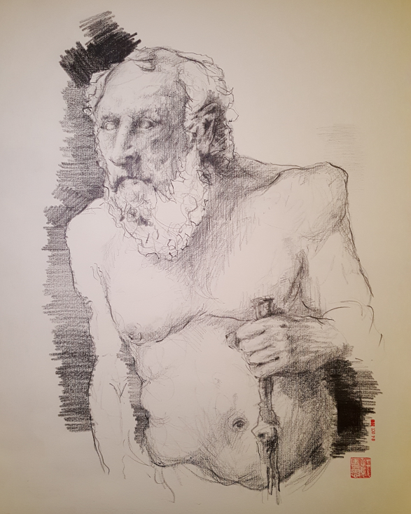 Portraits, auto-portraits, Copies de maîtres Flamands. Huiles, encre, fusain.