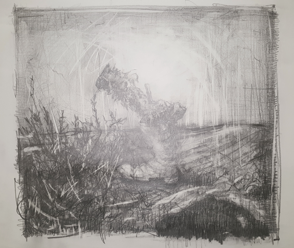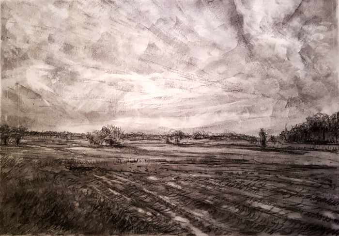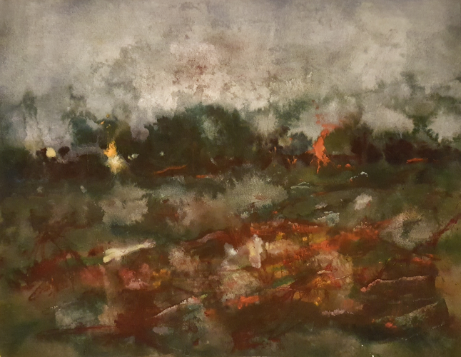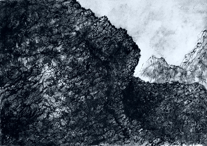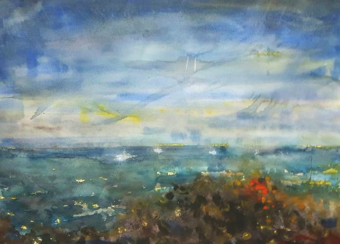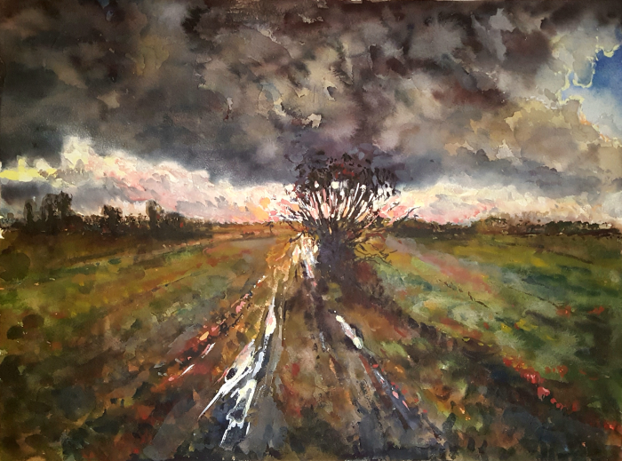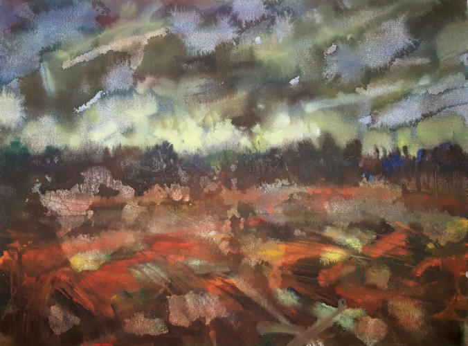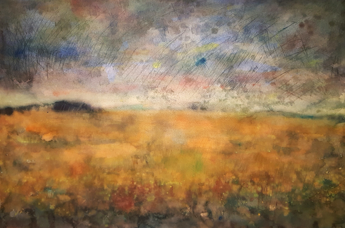 Paysages divers. 2014 à 2016. Aquarelles, eaux fortes et fusain.