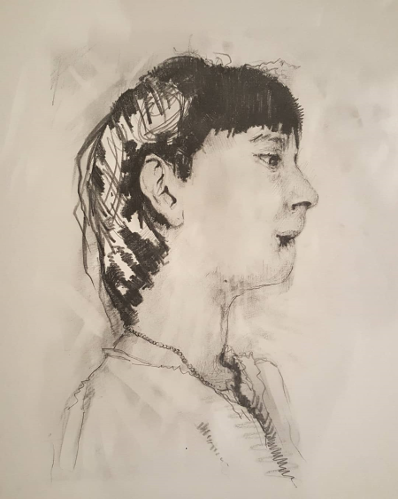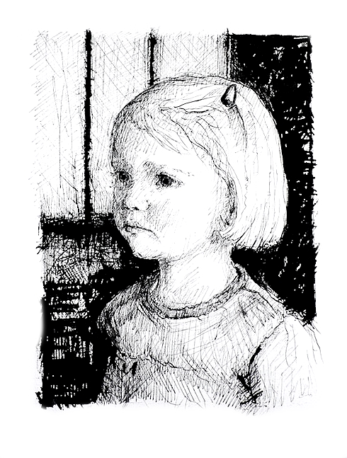 Portraits d'êtres aimés - pointe et encre, lavis, dessins, techniques mixtes.